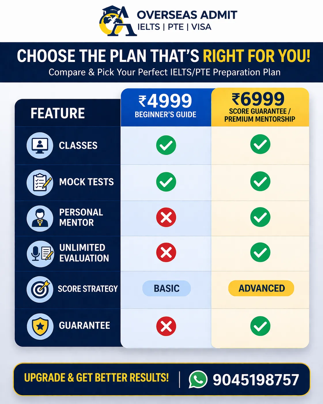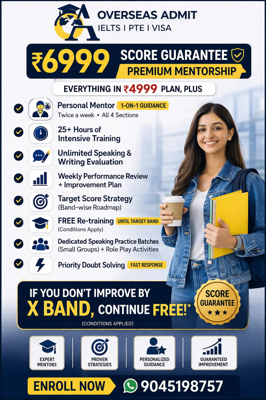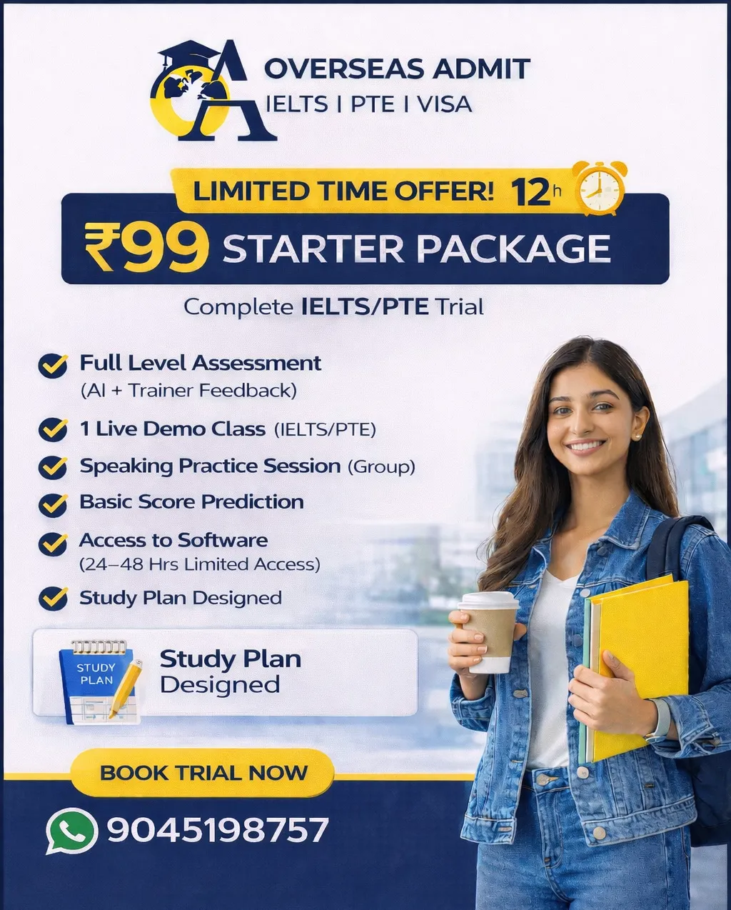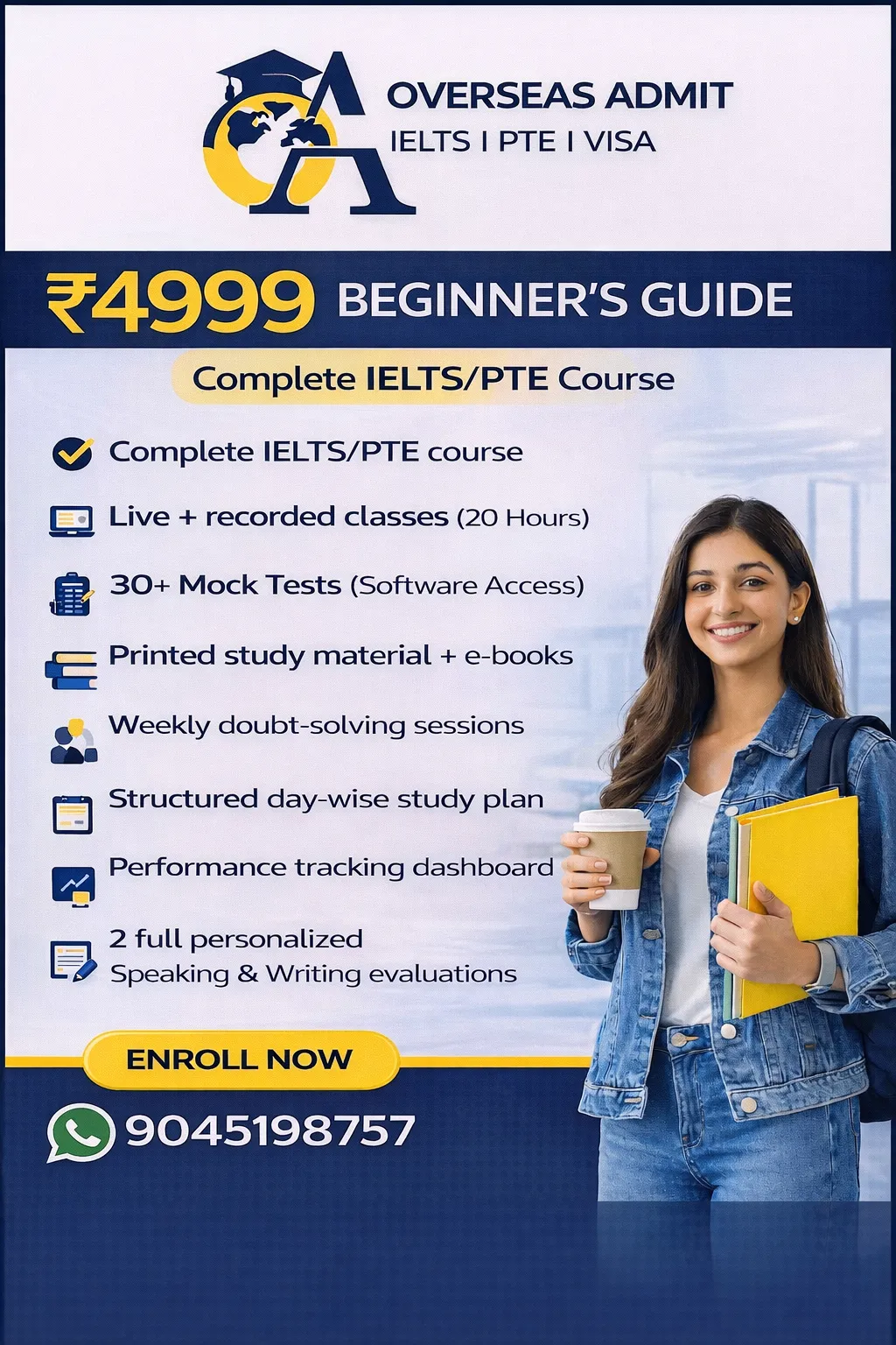 At Overseas Admit, we are dedicated to helping students achieve their global education goals through expert IELTS and PTE preparation. Our approach goes beyond traditional coaching—we combine structured learning, advanced technology, and personalized mentorship to deliver real, measurable results. With British Council–certified trainers, comprehensive study plans, regular mock assessments, and performance tracking, we ensure every student receives the guidance they need to improve confidently. Whether you’re starting from basics or targeting a high band score, our tailored programs are designed to match your pace, strengthen your weak areas, and maximize your final outcome. At Overseas Admit, your success isn’t just a goal—it’s a commitment we actively work towards every day.