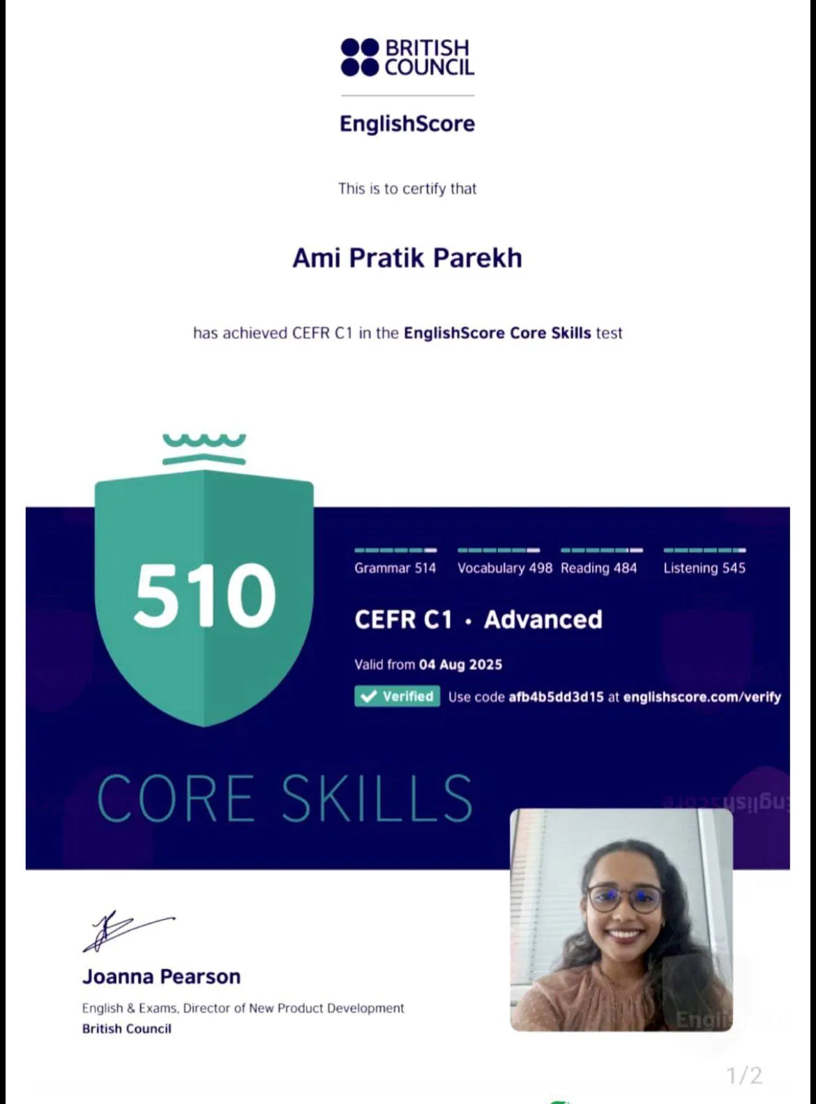 With a strong track record of helping students achieve their desired scores, Ami combines proven exam techniques with real-world communication skills, making her sessions both result-oriented and highly engaging.